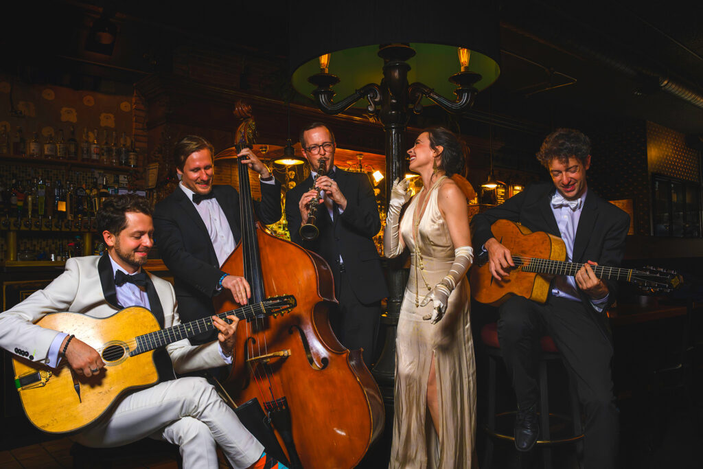 Djangophonique is an award winning project that delivers the infectious joy, and expressive freedom that is at the heart of Django Reinhardt’s jazz manouche. With respect for the tradition and a fearless creativity that bends the conventions of the style, Djangophonique is keeping the Hot Club revival alive and well. The result is a sound that’s unmistakable to fans of the music, and alluring to the uninitiated—a sound that can bring the lively energy of a Parisian dance hall to the quietest listening room or captivate a buzzing festival audience with the aching nostalgia of a shimmering ballad.