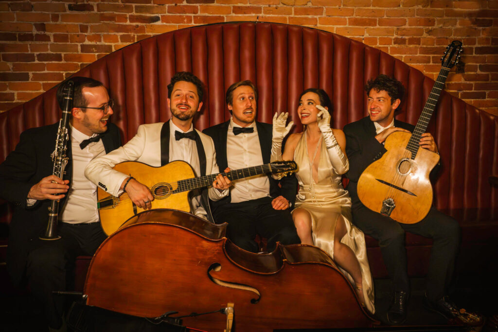 Djangophonique has been described as “…the cleanest, most genuine manouche jazz that can be heard in Michigan” (Local Spins). Led by guitar player Andrew Brown, a true disciple of the style, the project has cultivated a community of musicians who channel the tenacious agility that the music demands. In 2022 the group released their first studio album, “Introducing Djangophonique,” which featured Tyler Rindo on Clarinet and won Best Jazz Album, Traditions Award, as well as earning them Artist Of The Year at the WYCE Jammies. In 2023 the group began a new chapter with the addition of vocalist Katie Lynne, who’s soulful approach channels the mystery and appeal of an unplaceable era. Joined by David Bendena on rhythm guitar and Dave Stearns on upright bass, Djangophonique is poised to forge a connection with an expansive audience through the resonance of their artistry.